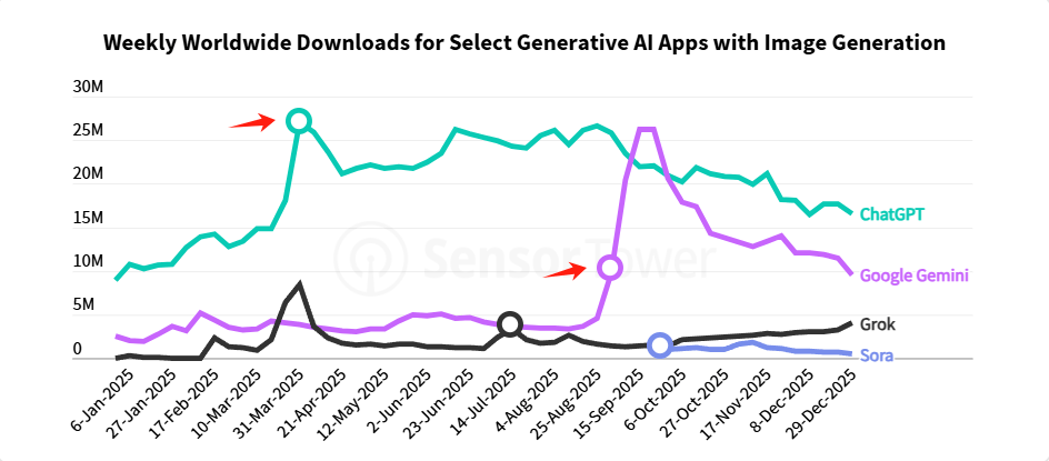 比拟「闷声发大财」的AI Coding,多模态才是AI接近平常东谈主的破圈技巧,客岁ChatGPT和Gemini的两次「翻倍级」增长,一个是因为GPt-4o的「吉卜力风潮」,一个是基于Nano Banana的降维打击,都是多模态在建功。